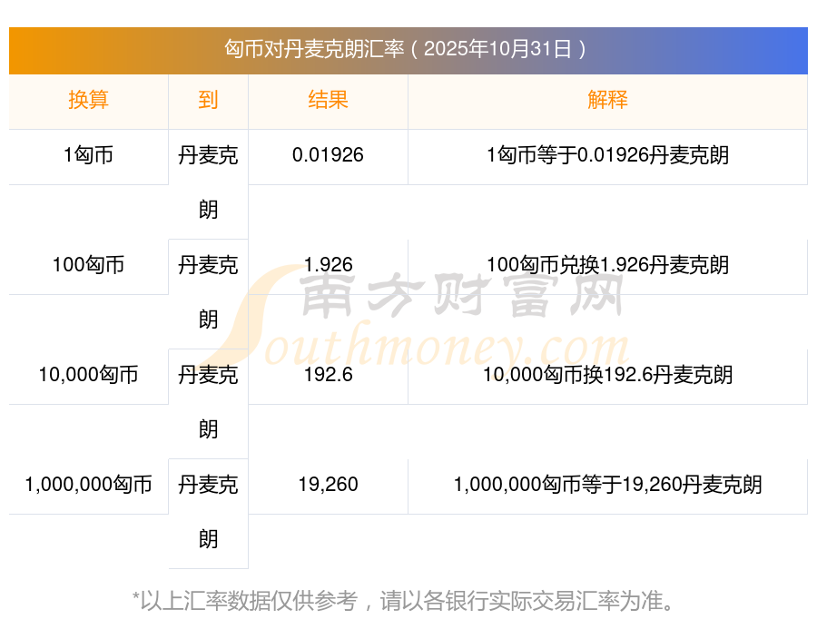 現(xiàn)在匈幣對丹麥克朗匯率價多少?_今日外匯市場2025年10月31日