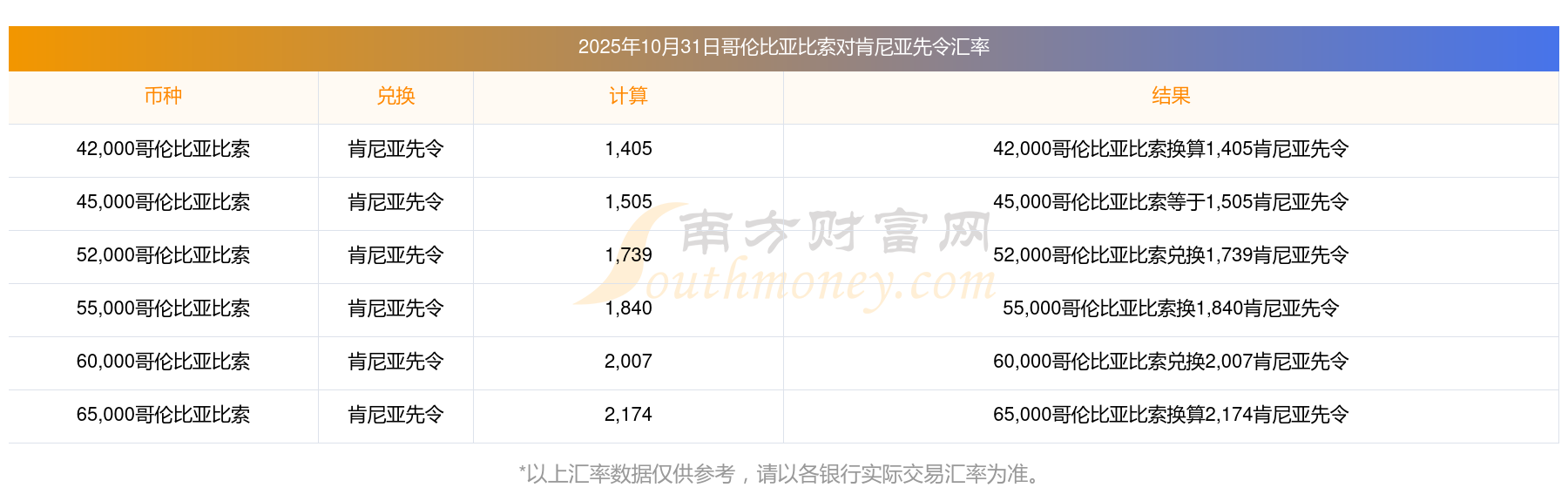 匯率今日換算:53哥倫比亞比索對(duì)換肯尼亞先令匯率是多少2025年10月31日