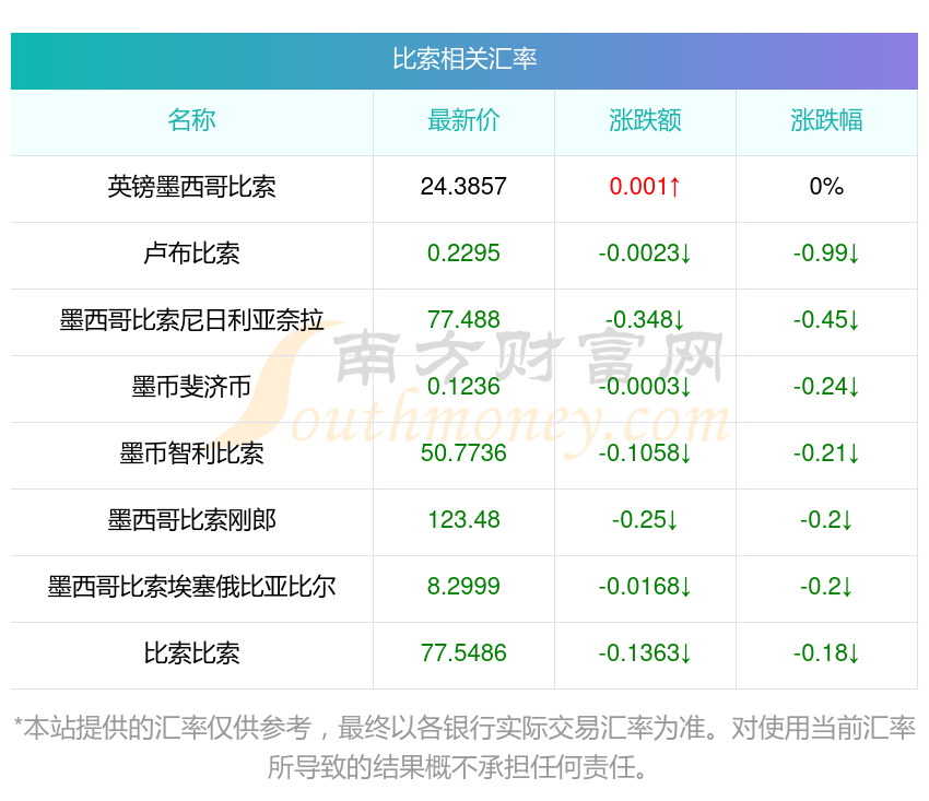 南方財(cái)富網(wǎng)為您提供比索對(duì)雷亞爾匯率最新價(jià)格詳情。