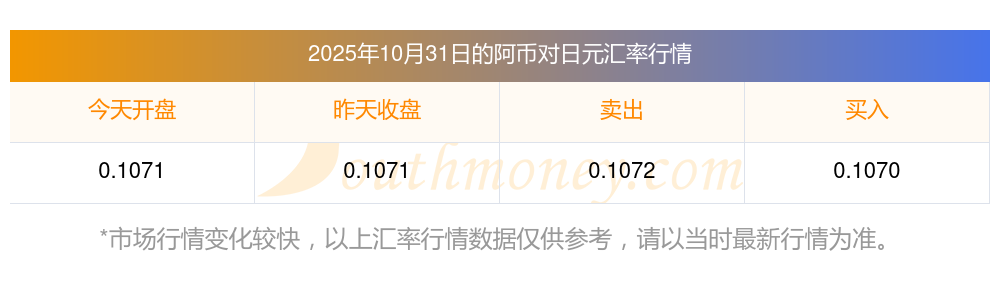 2025年10月31日阿幣兌換日元匯率是:0.1071