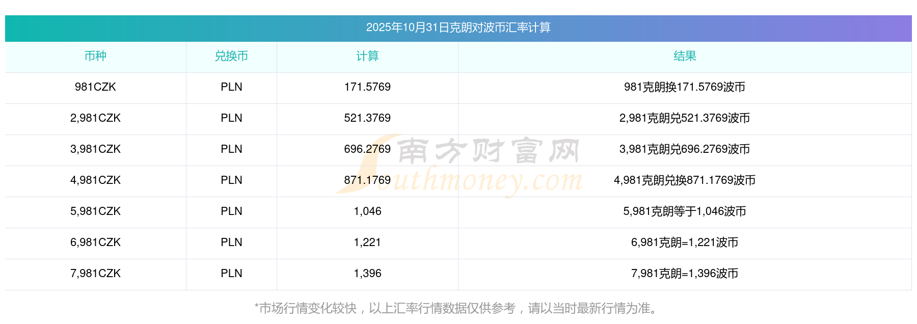 匯率實時更新!90克朗兌換波幣匯率表(2025年10月31日)