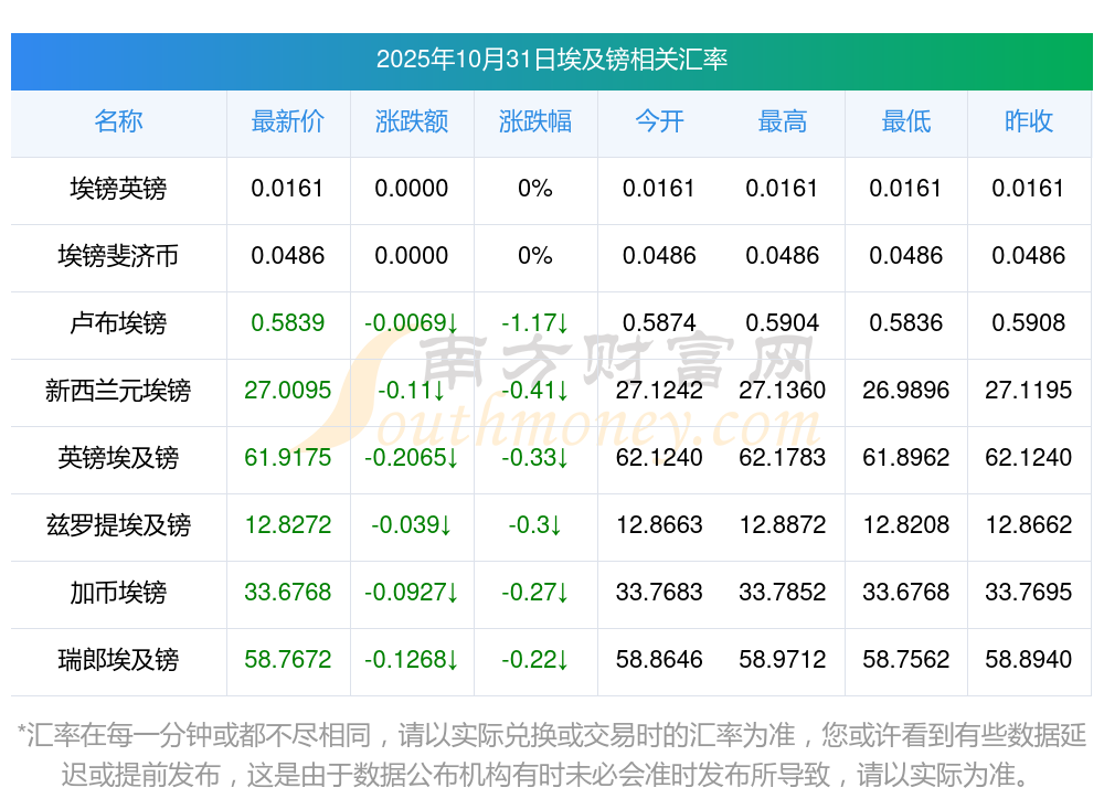 2025年10月31日埃及鎊相關(guān)匯率查詢