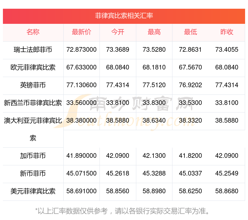 2025年11月1日菲律賓比索相關(guān)匯率查詢