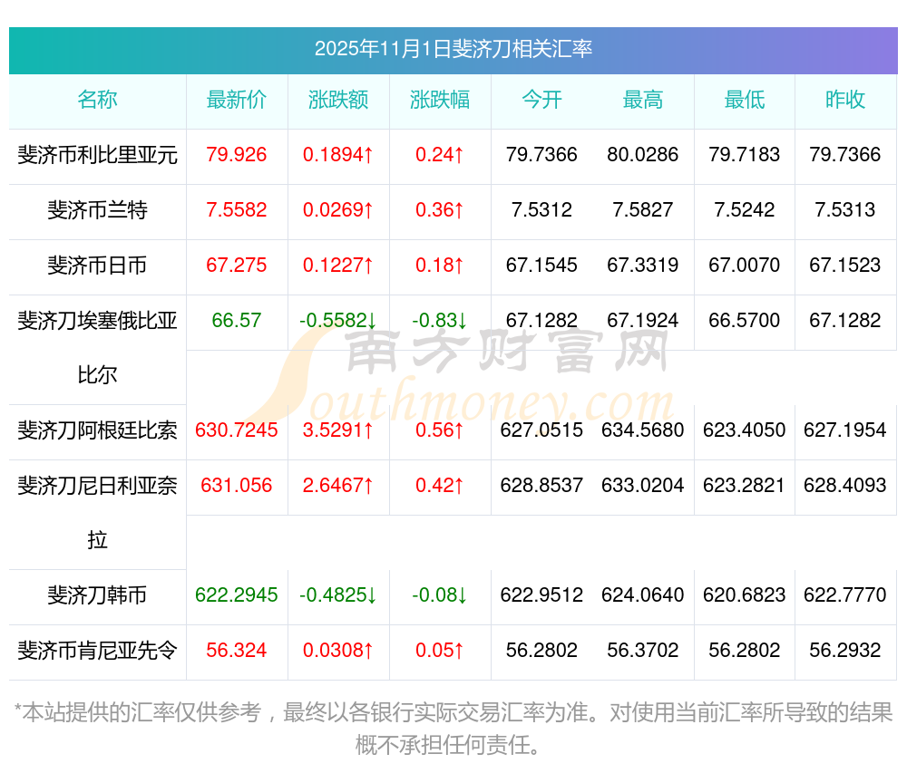 2025年11月1日斐濟刀相關(guān)匯率查詢