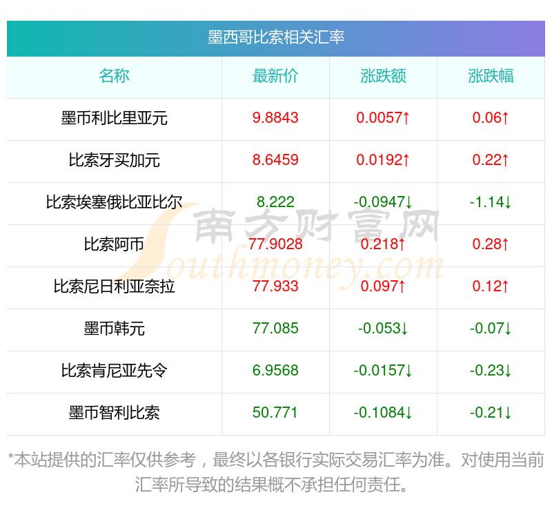 南方財富網(wǎng)為您提供墨西哥比索對哥倫比亞比索匯率最新價格詳情。