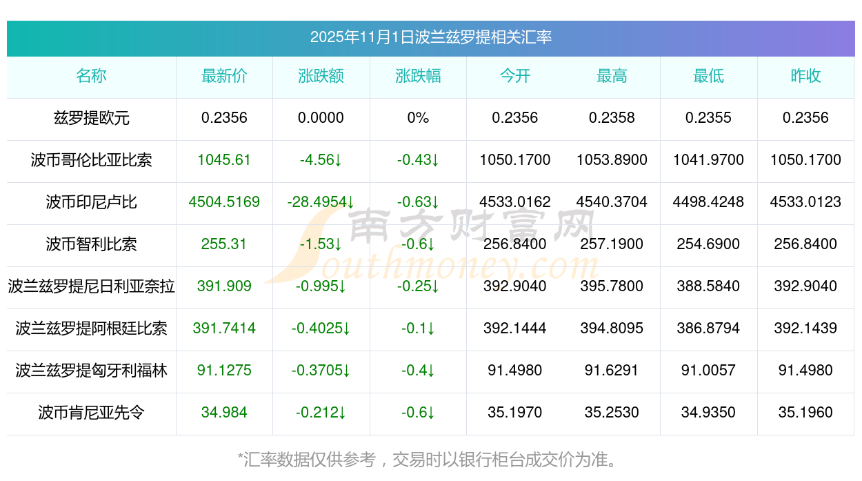 2025年11月1日波蘭茲羅提相關(guān)匯率查詢(xún)