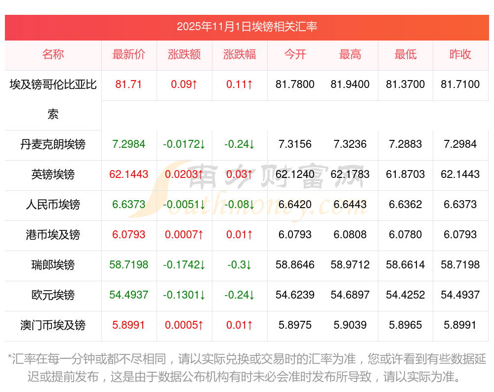 2025年11月1日埃鎊相關(guān)匯率查詢