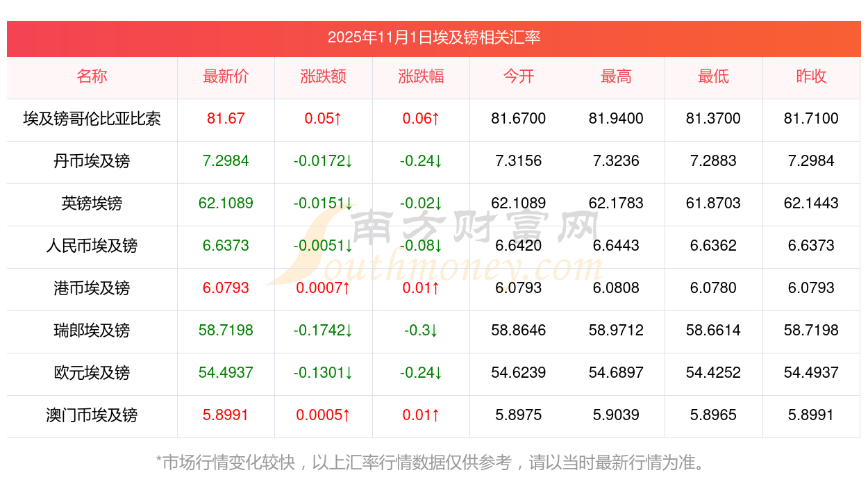2025年11月1日埃及鎊相關(guān)匯率查詢