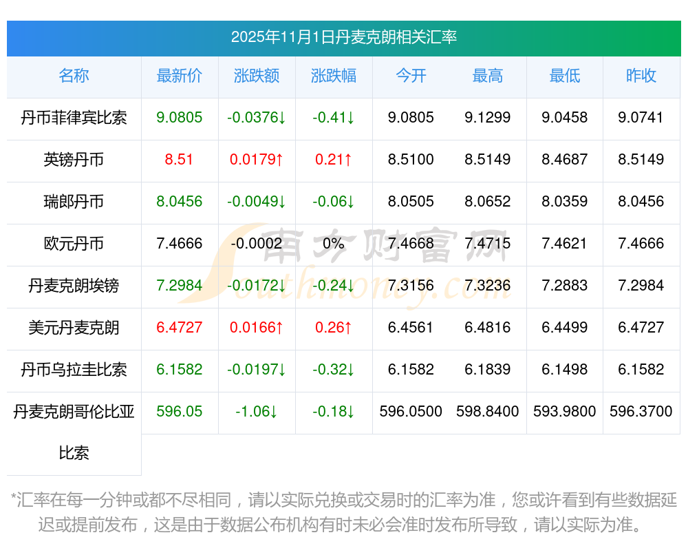2025年11月1日丹麥克朗相關(guān)匯率查詢