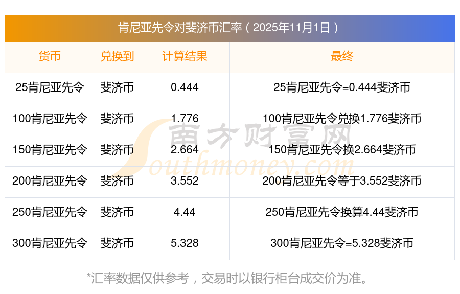 2025-11-1 26肯尼亞先令兌換成斐濟(jì)幣匯率_匯率查詢方法