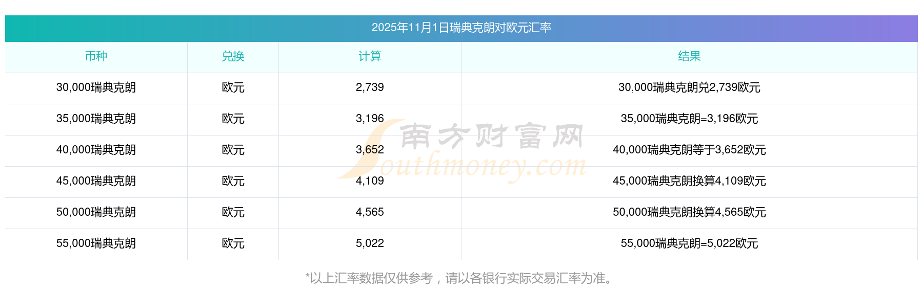 2025年11月1日瑞典克朗與歐元的兌換匯率計算如下: