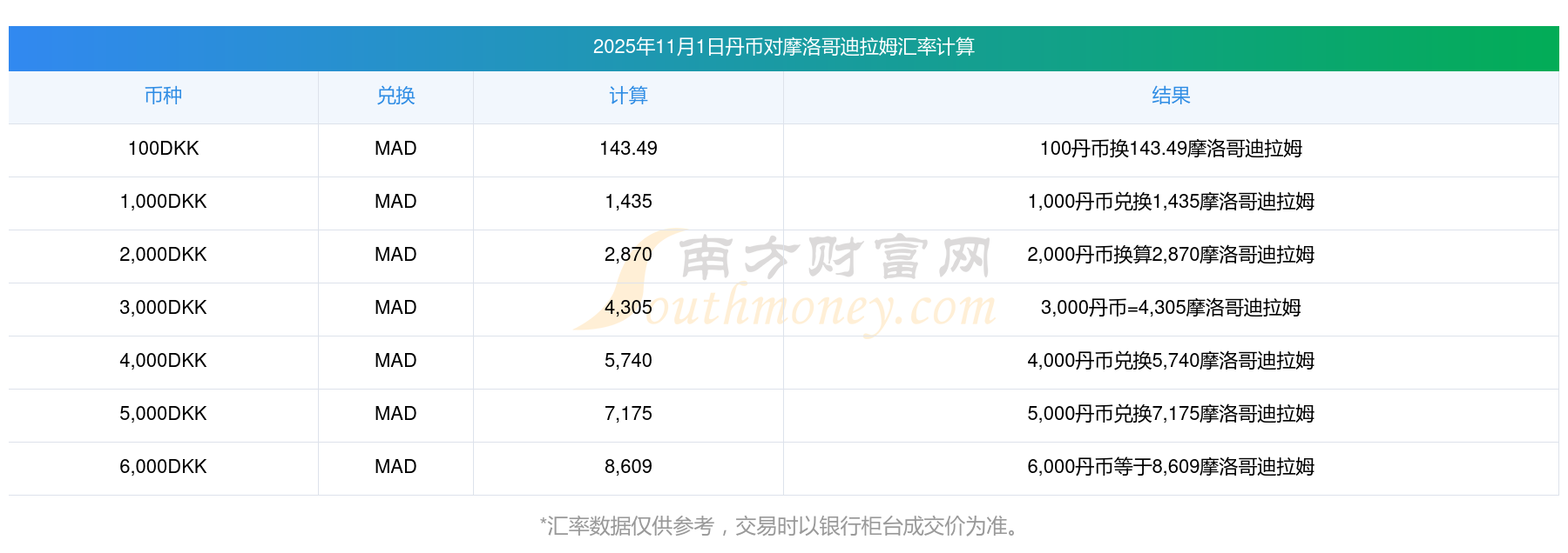 南方財(cái)富網(wǎng)為您提供丹幣對(duì)摩洛哥迪拉姆匯率最新價(jià)格詳情。