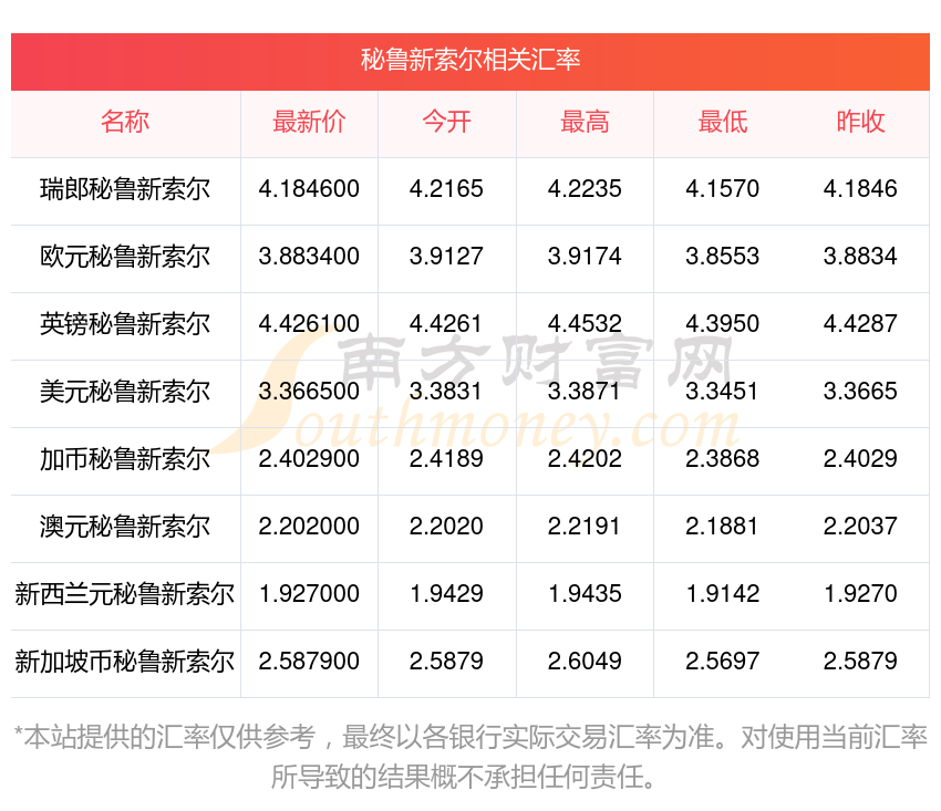 2025年11月1日秘魯新索爾相關(guān)匯率查詢(xún)