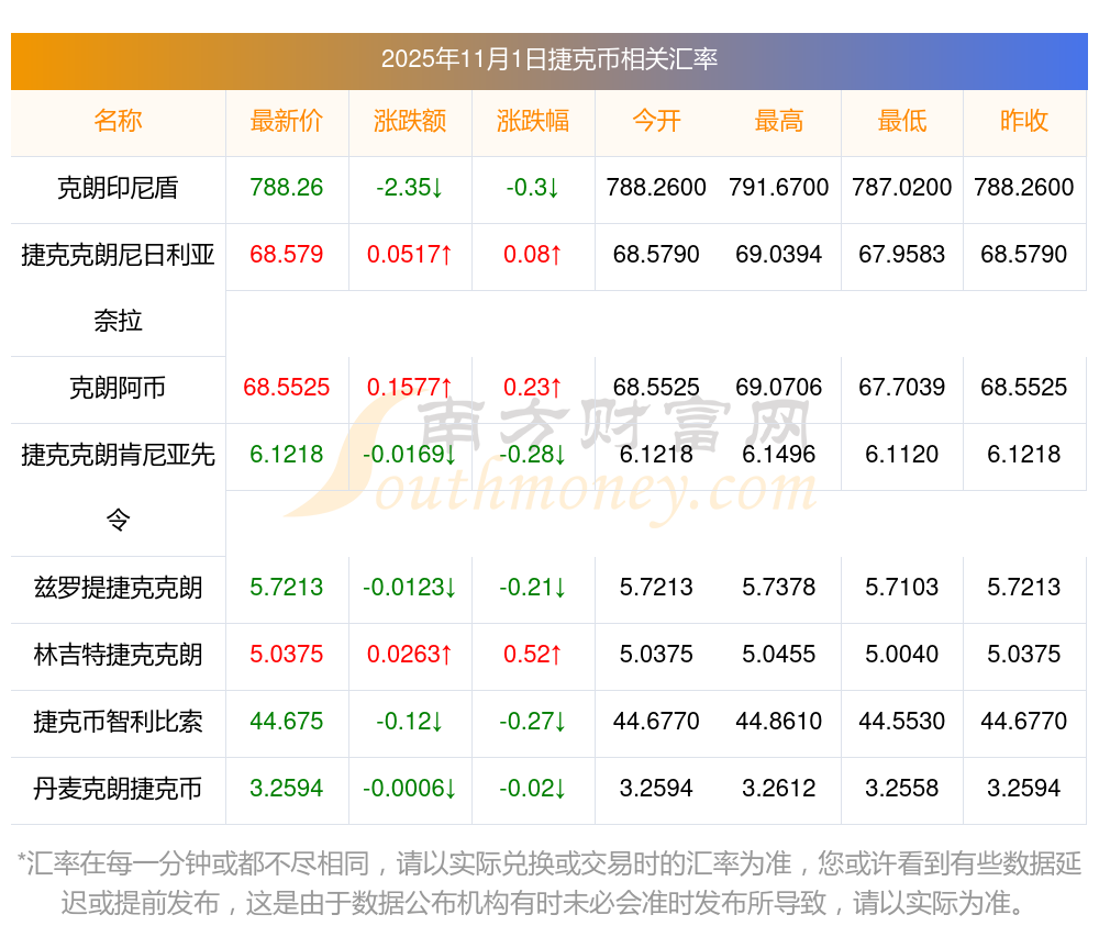 2025年11月1日捷克幣相關(guān)匯率查詢