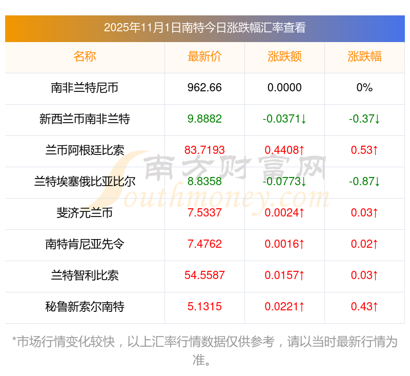 根據(jù)2025年11月1日匯率計算,ZAR兌換THB匯率最新價1.875000,今開價1.8750,昨收價1.8691,最高價1.8757,最低價1.8604。