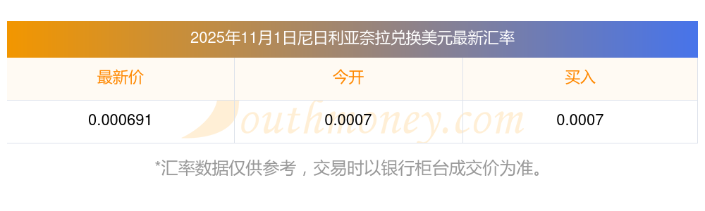 南方財富網(wǎng)為您提供尼日利亞奈拉對美元匯率最新價格詳情。