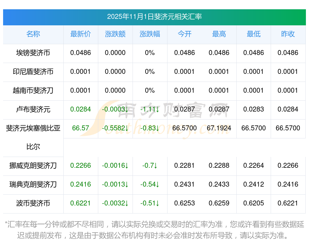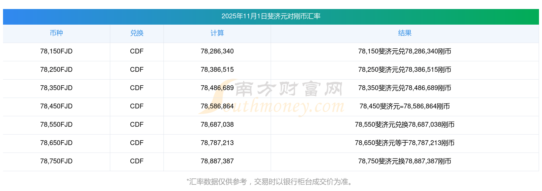 今日斐濟(jì)元兌換剛幣匯率查詢11月1日