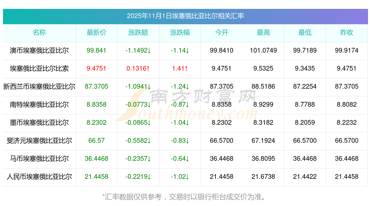 2025年11月1日埃塞俄比亞比爾相關(guān)匯率查詢(xún)