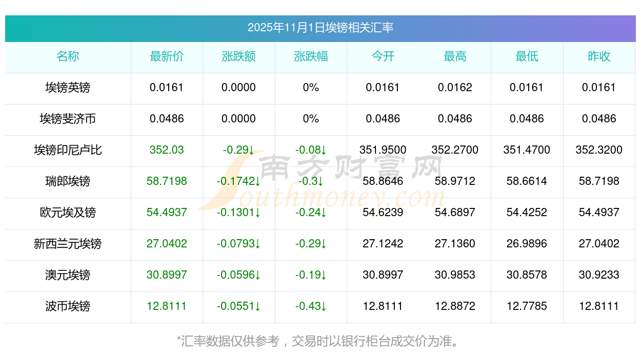 2025年11月1日埃鎊相關(guān)匯率查詢