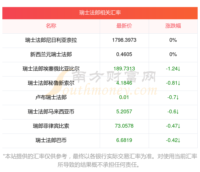 2025年11月1日瑞士法郎相關(guān)匯率查詢