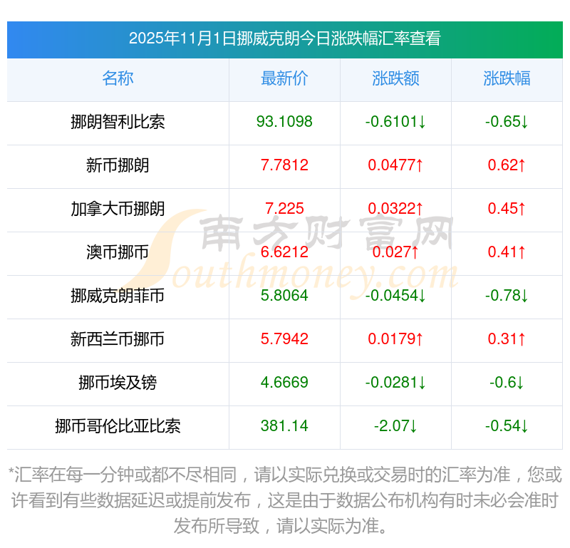 2025年11月1日挪威克朗相關(guān)匯率查詢