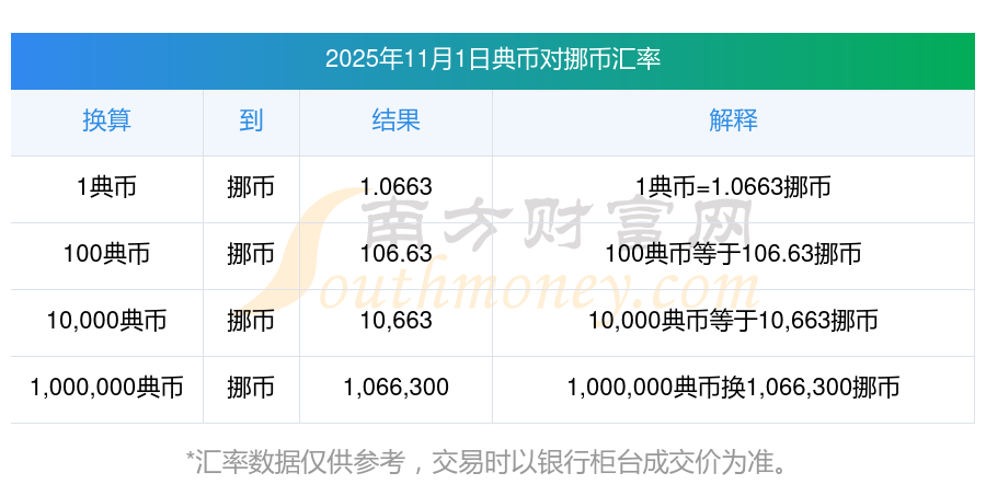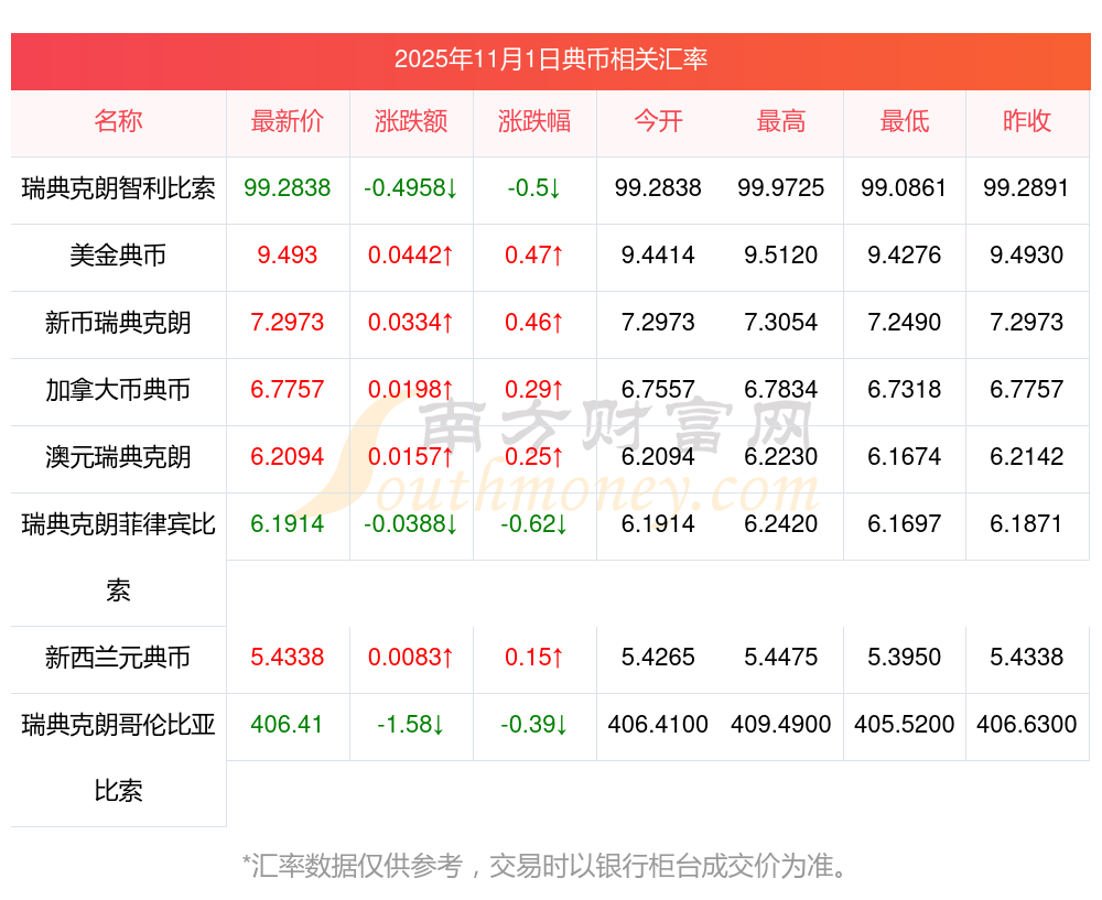 今天典幣購匯行情:340典幣對挪幣匯率多少?11月1日