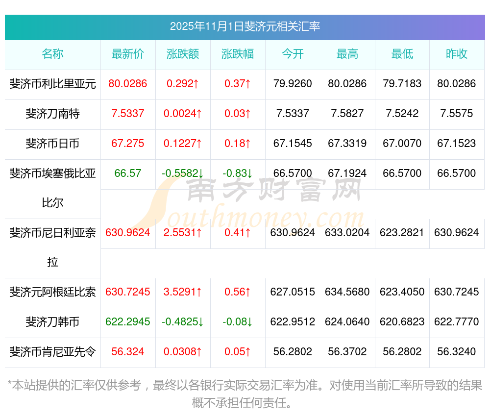 2025年11月1日斐濟(jì)元相關(guān)匯率查詢