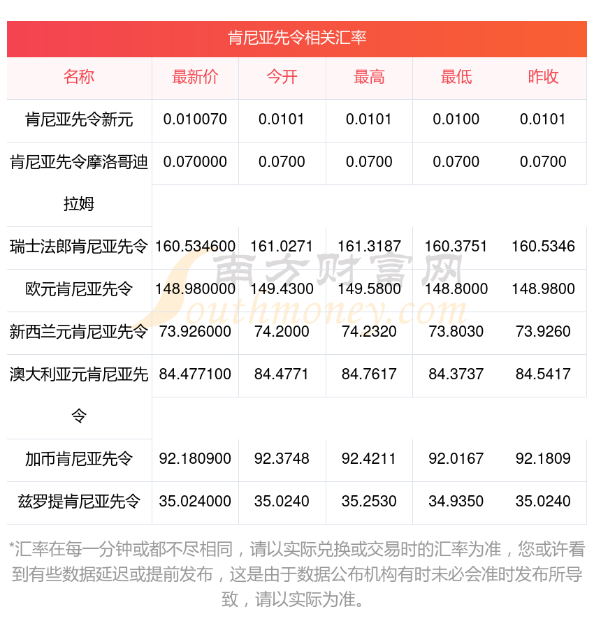 南方財(cái)富網(wǎng)為您提供肯尼亞先令對美金匯率最新價(jià)格詳情。