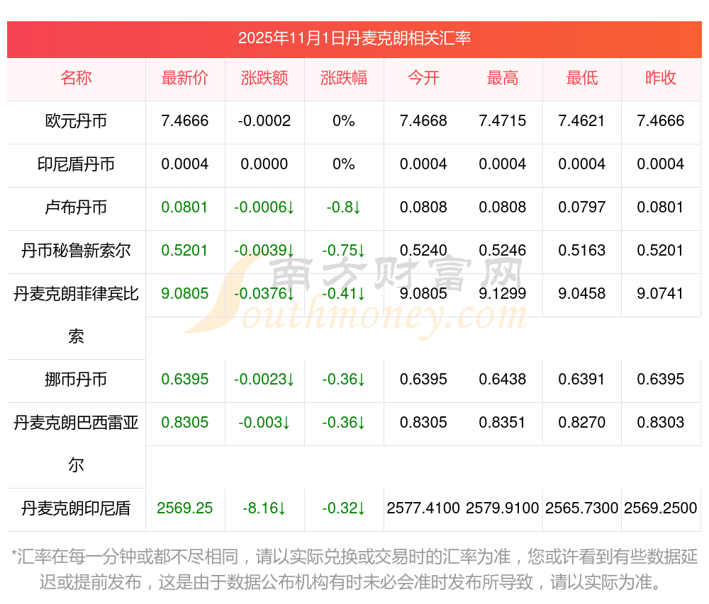 2025年11月1日丹麥克朗相關(guān)匯率查詢