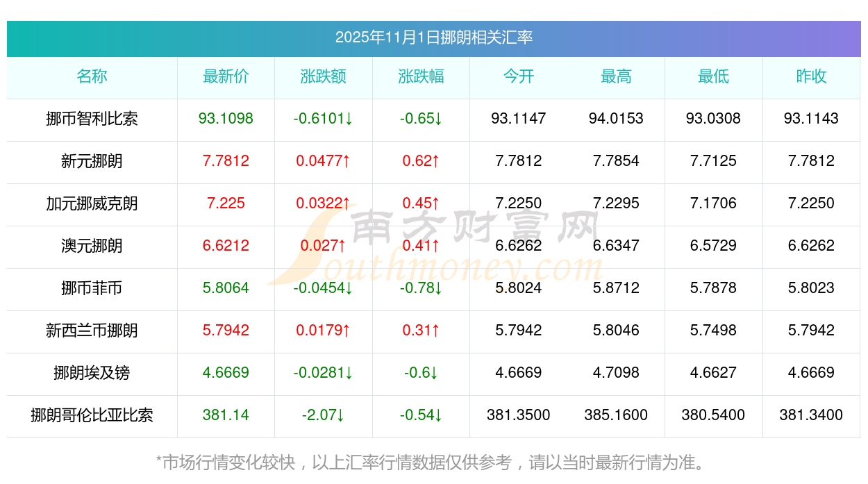2025年11月1日挪朗相關(guān)匯率查詢(xún)