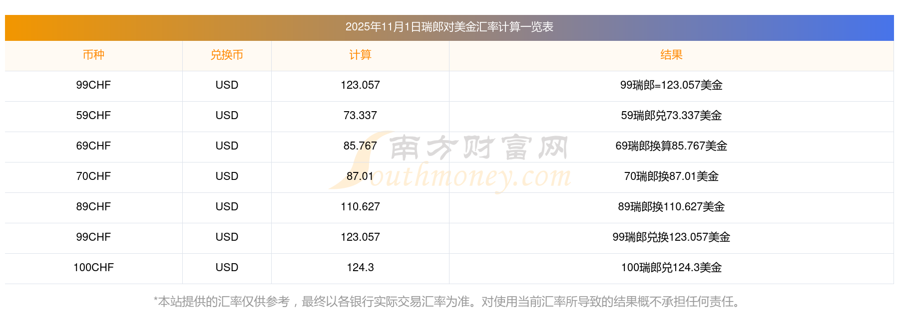 今日瑞郎轉換美金匯率實時匯率換算 11-01