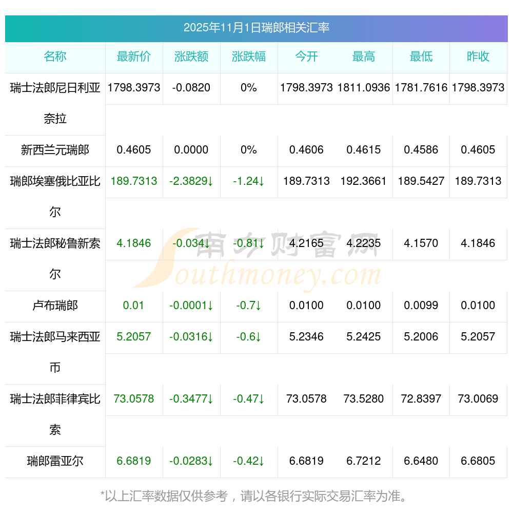 南方財富網(wǎng)為您提供瑞郎對美金匯率最新價格詳情。