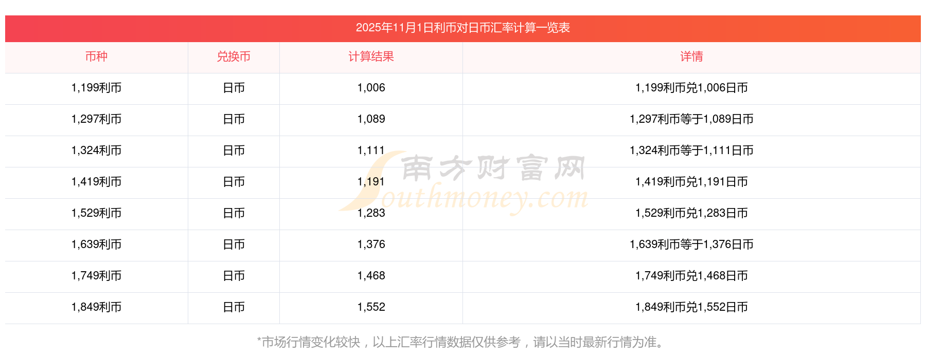 南方財富網(wǎng)為您提供利幣對日幣匯率最新價格詳情。