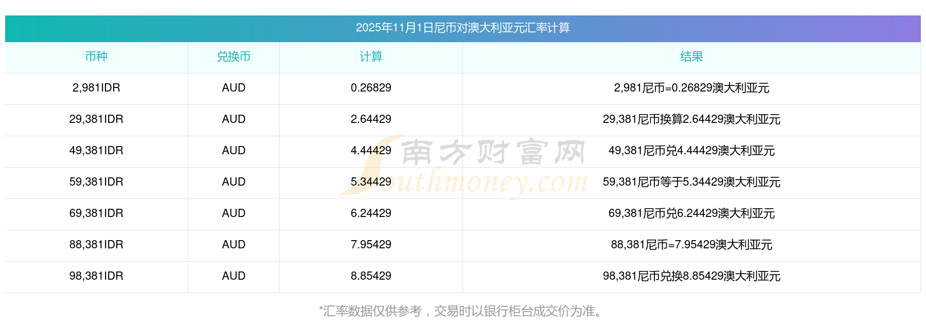 今天匯率計(jì)算:58尼幣等于多少澳大利亞元的?(2025年11月1日)