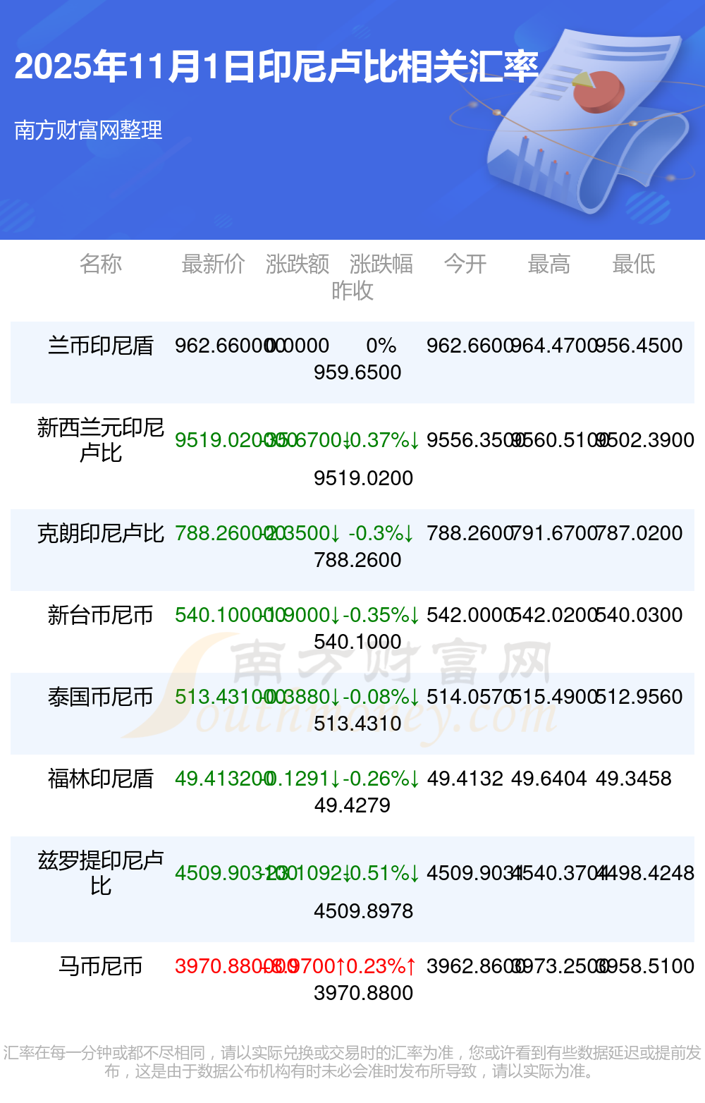 2025年11月1日印尼盧比相關(guān)匯率查詢
