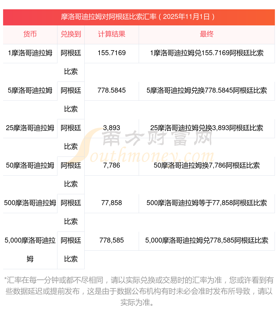 今天摩洛哥迪拉姆新行情:摩洛哥迪拉姆100購阿根廷比索匯率多少?2025-11-1