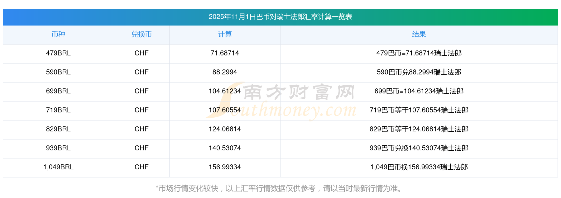匯率實時更新!65巴幣兌換瑞士法郎匯率表(2025年11月1日)