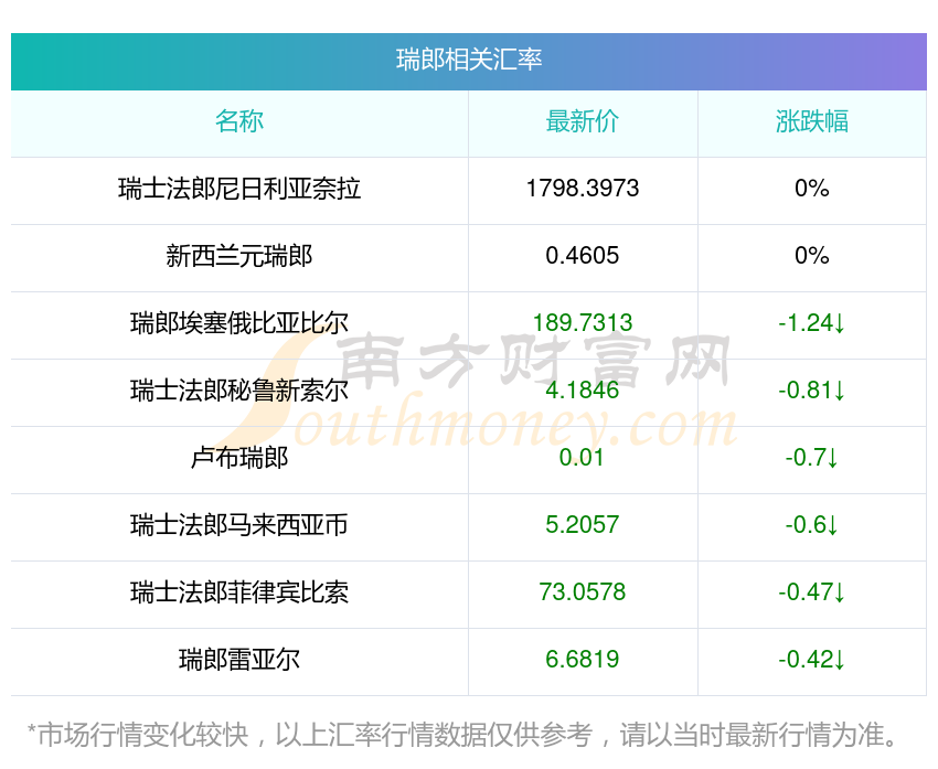 南方財富網(wǎng)為您提供瑞郎對利幣匯率最新價格詳情。
