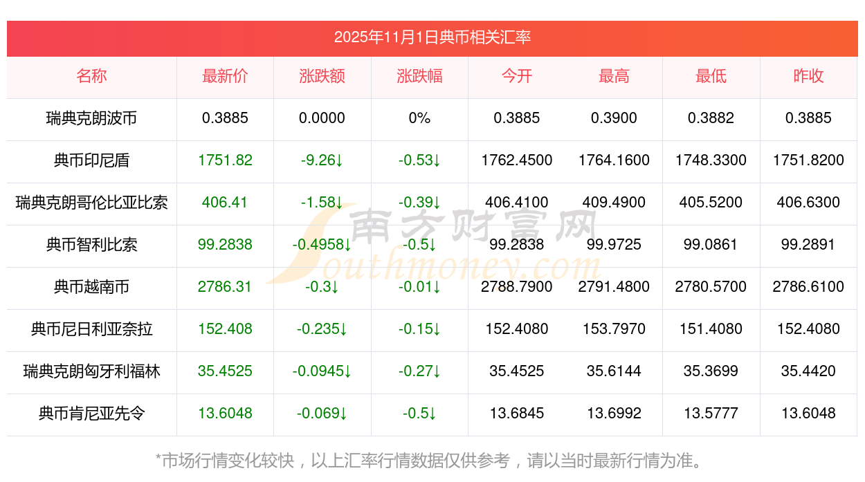 根據(jù)2025年11月1日匯率計(jì)算,SEK兌換IDR匯率最新價1751.820000,今開價1762.4500,昨收價1751.8200,最高價1764.1600,最低價1748.3300。