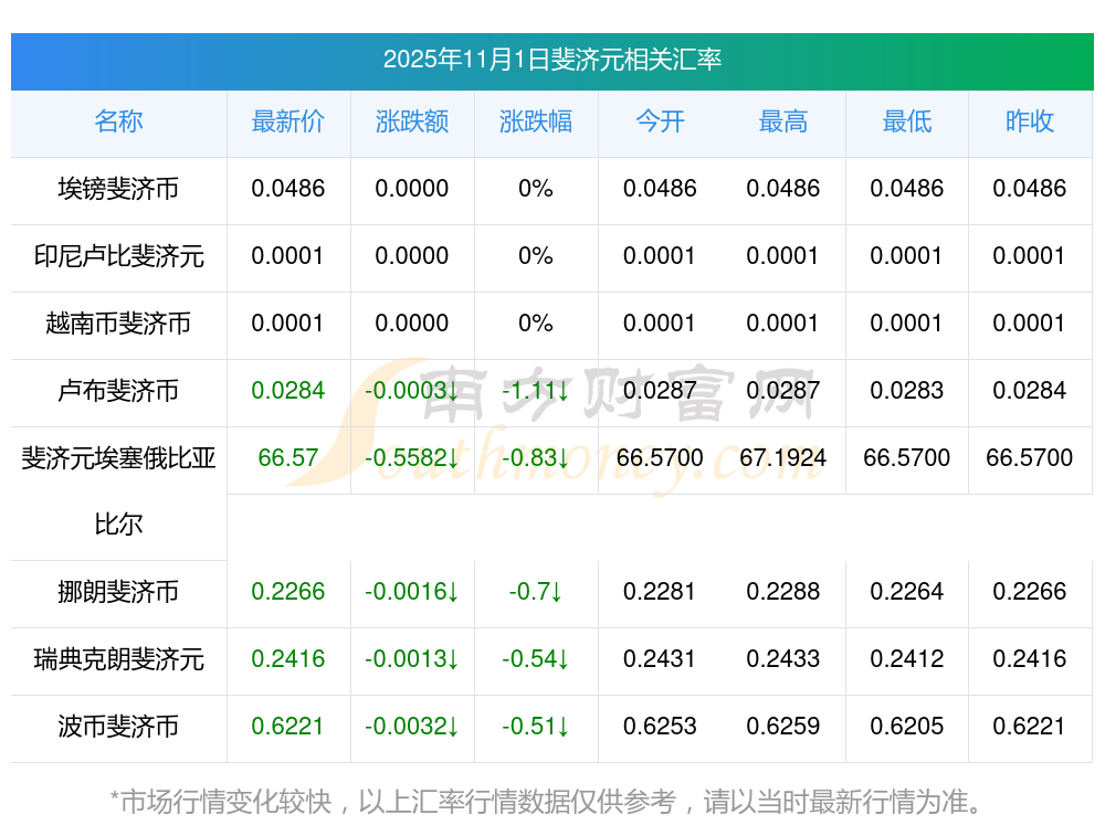 2025年11月1日斐濟元相關(guān)匯率查詢