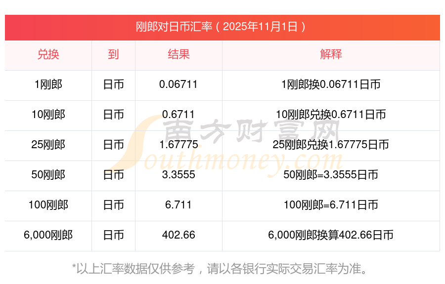 南方財富網(wǎng)為您提供剛郎對日幣匯率最新價格詳情。