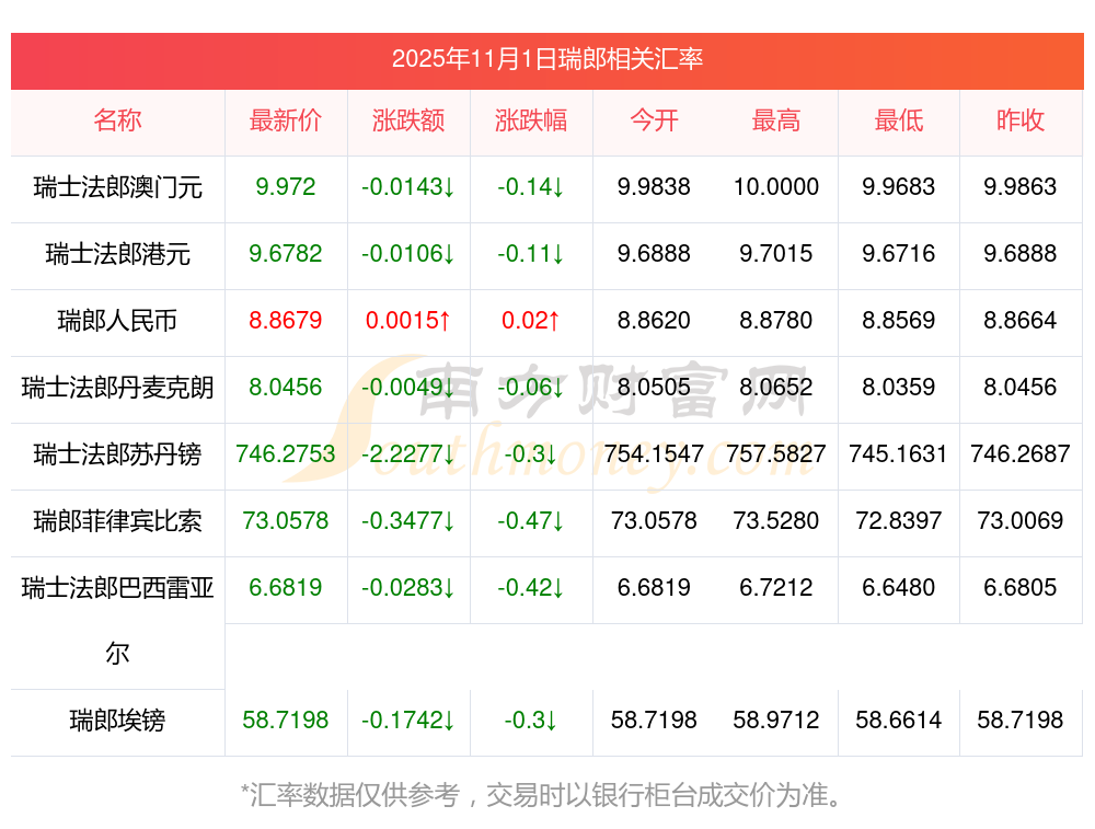 2025年11月1日瑞郎相關(guān)匯率查詢