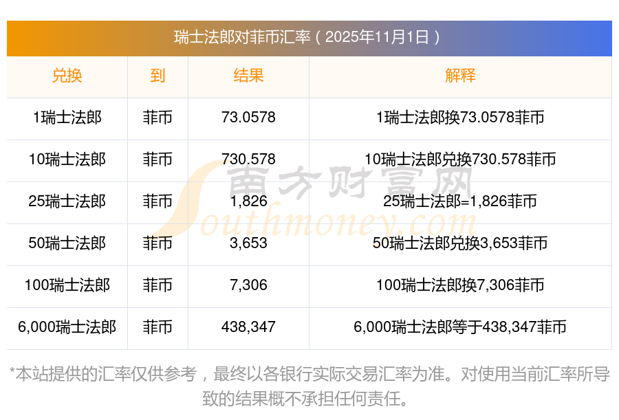 今天4瑞士法郎兌換菲幣是多少?2025年11月1日