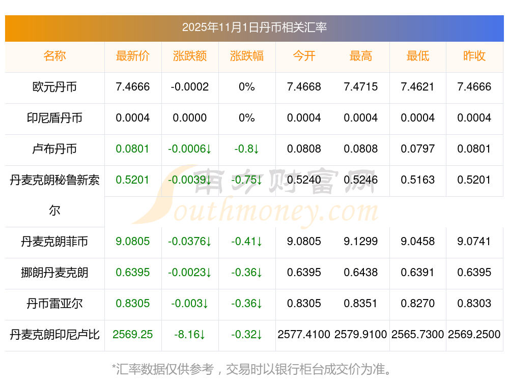根據(jù)2025年11月1日匯率,丹幣兌換雷亞爾匯率最新0.830500,今開0.8305,昨收0.8303,最高0.8351,最低0.8270。