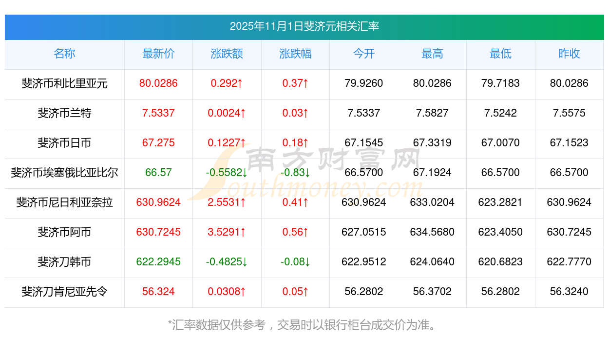 2025年11月1日斐濟元相關(guān)匯率查詢