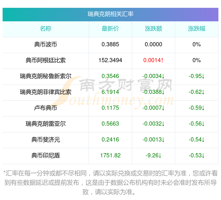 2025年11月1日瑞典克朗相關(guān)匯率查詢