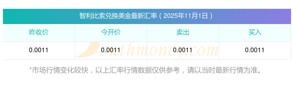2025年11月1日智利比索兌換美金匯率是:0.00106