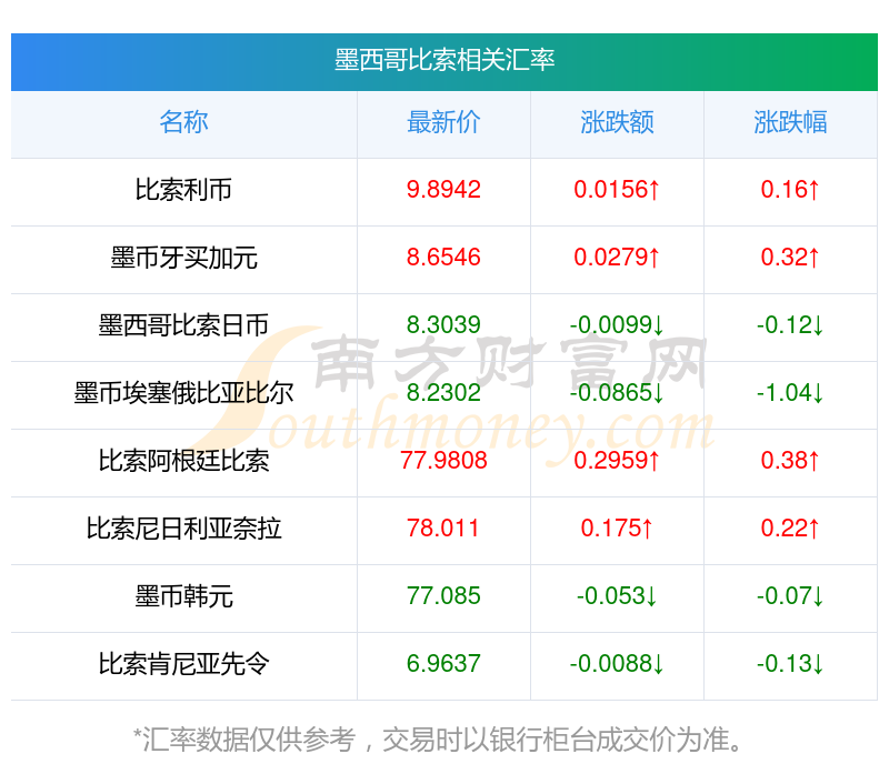 2025年11月1日墨西哥比索相關(guān)匯率查詢