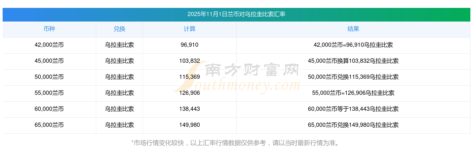 1萬蘭幣兌換烏拉圭比索計算多少_今日實時匯率 11月1日
