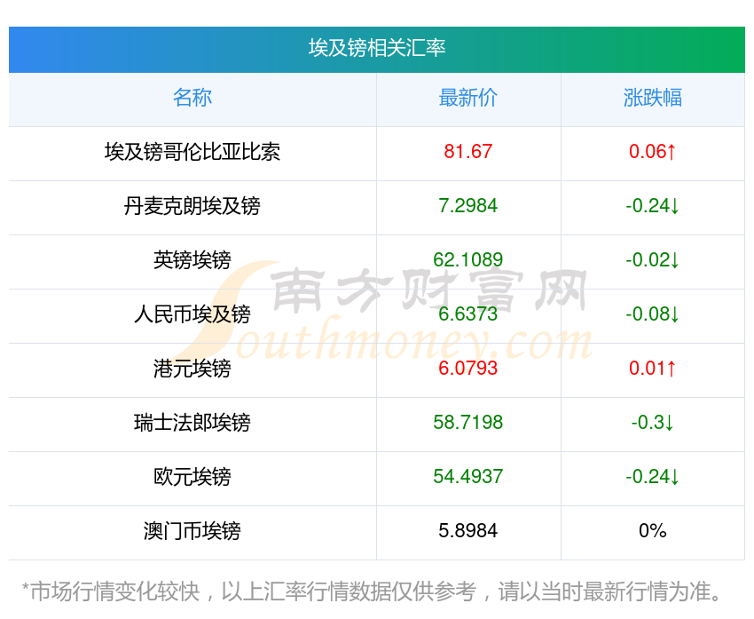 根據(jù)2025年11月1日匯率,埃及鎊兌換哥倫比亞比索匯率最新81.670000,今開81.6700,昨收81.7100,最高81.9400,最低81.3700。